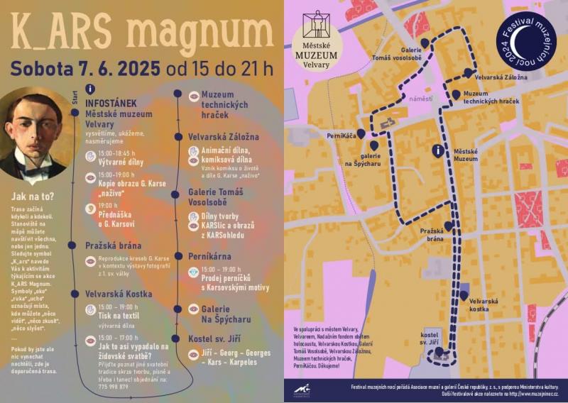 Městské muzeum Velvary spravuje jedinečnou sbírku obrazů a kreseb Georgese Karse, malíře světového významu narozeného v Kralupech nad Vltavou. Město na jeden den ožije jeho uměním. Vydejte se s námi na cestu plnou netradičních zkušeností, výzev